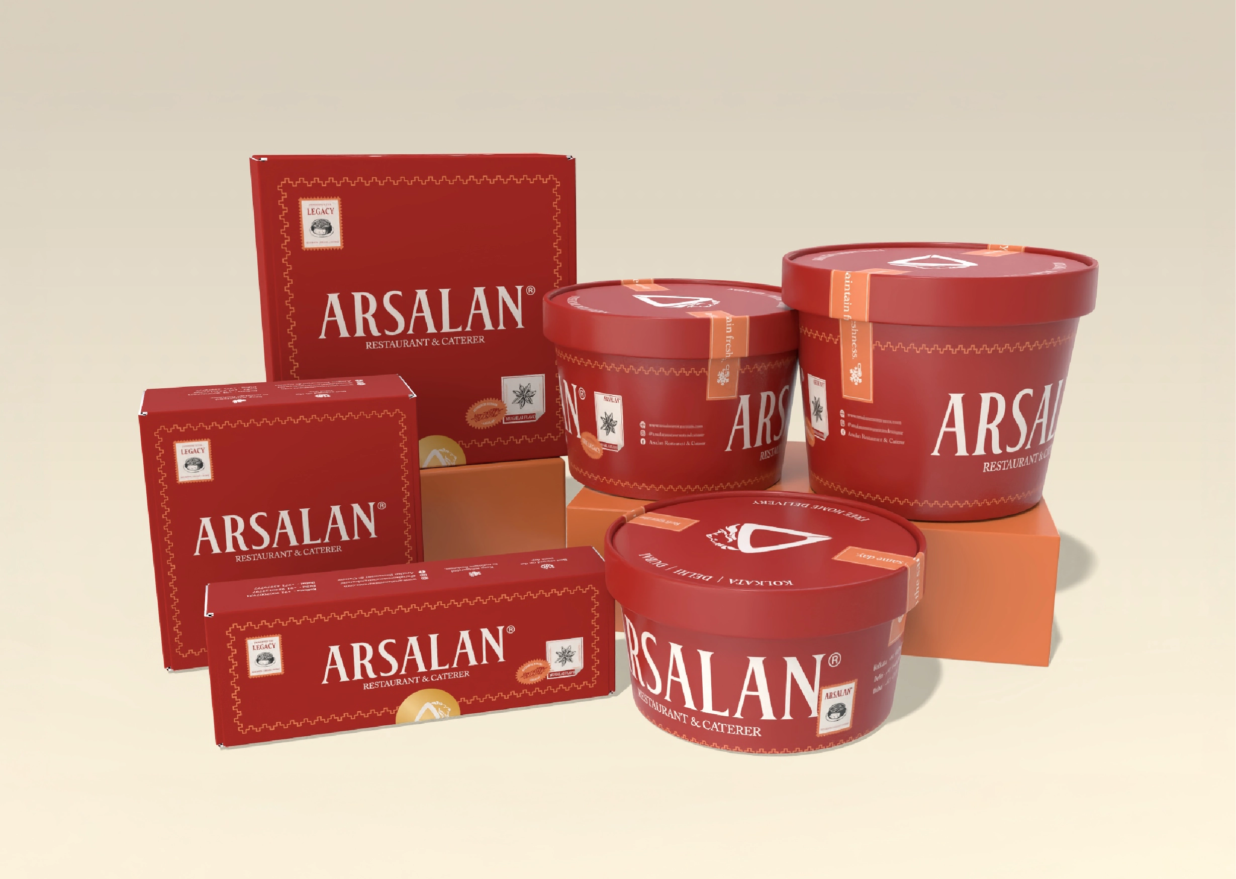 Redesigning the packaging for one of Kolkata’s beloved Mughlai restaurants brands, we kept in mind the client’s requirements, as well as the expectations of the consumer who would receive the end product. The new branding was applied in a way so that it didn’t feel too unfamiliar to consumers. The new Arsalan Red became the hero of the packaging, with the Jaamdani pattern and retro stickers used as visual elements to tie the entire design together.