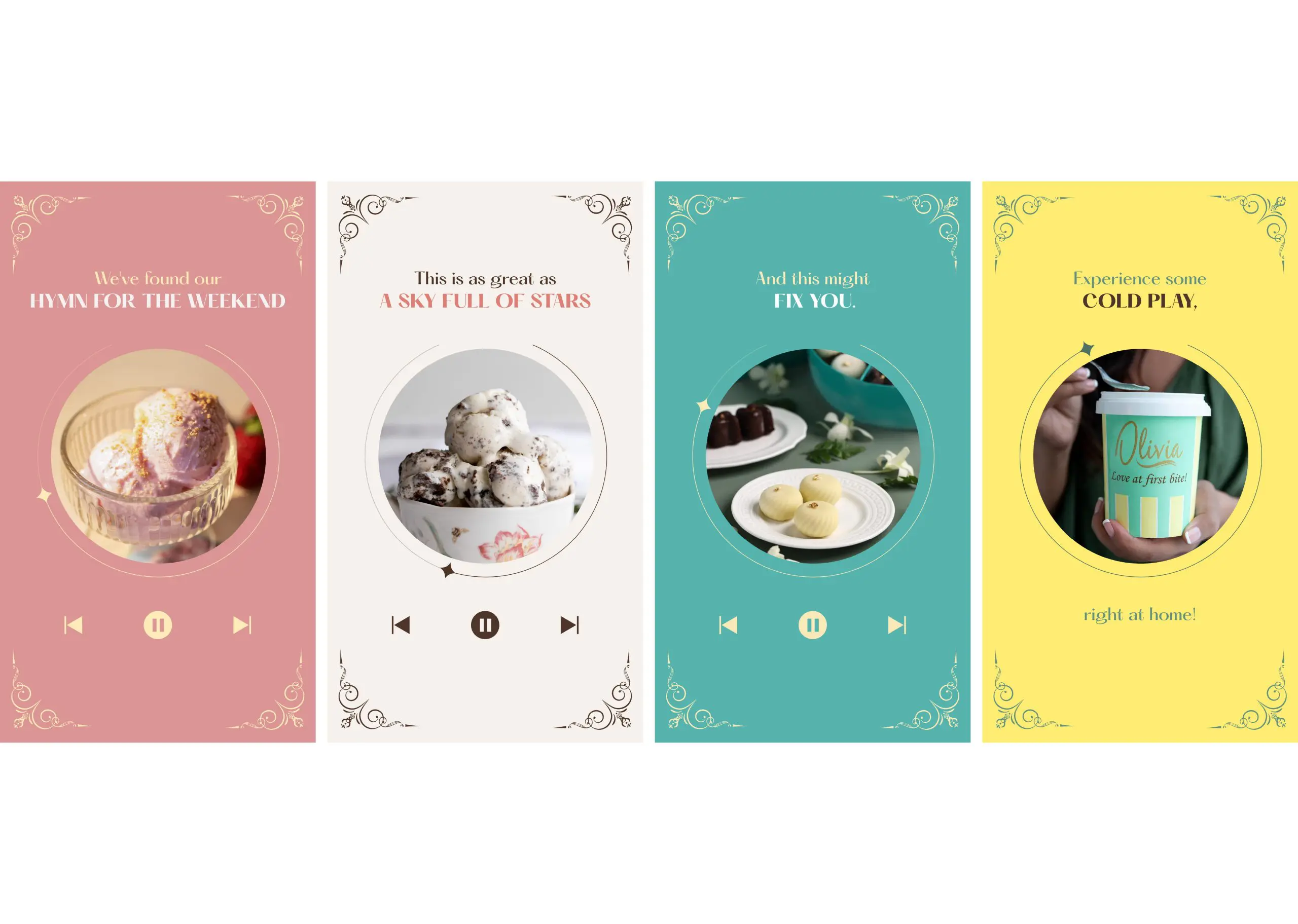 Olivia’s social media focuses on the joy ice cream can bring to your life, keeping the brand identity in mind with a lot of pastel colours, a warm tone, and deep engagement with the audience. Whereas earlier the brand followed an extremely organic approach, we have now added some trending and interactive concepts to keep the audience engaged.