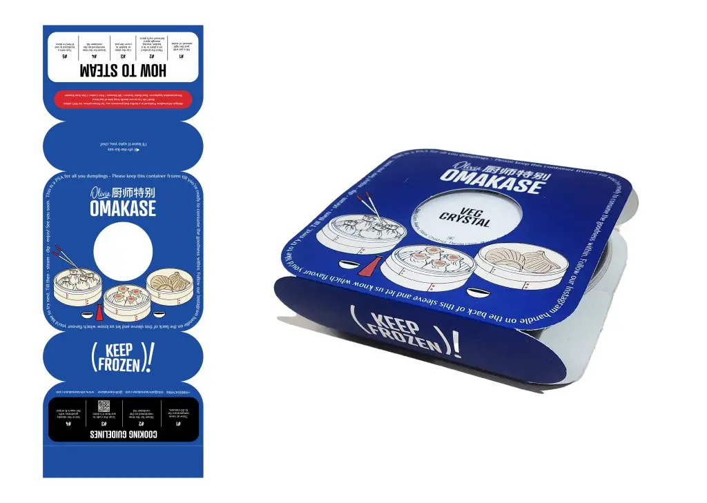 A seamless packaging experience not only gives the brand a definitive look but also solves practical challenges like storage, costing and consumer awareness. The packaging for Olivia Omakase communicates vital information regarding the product, including flavour, cooking instructions and other mandates in a way that is easily understandable and cost-effective. The dimsums are packaged in containers that are optimal for freezer storage without occupying too much space.