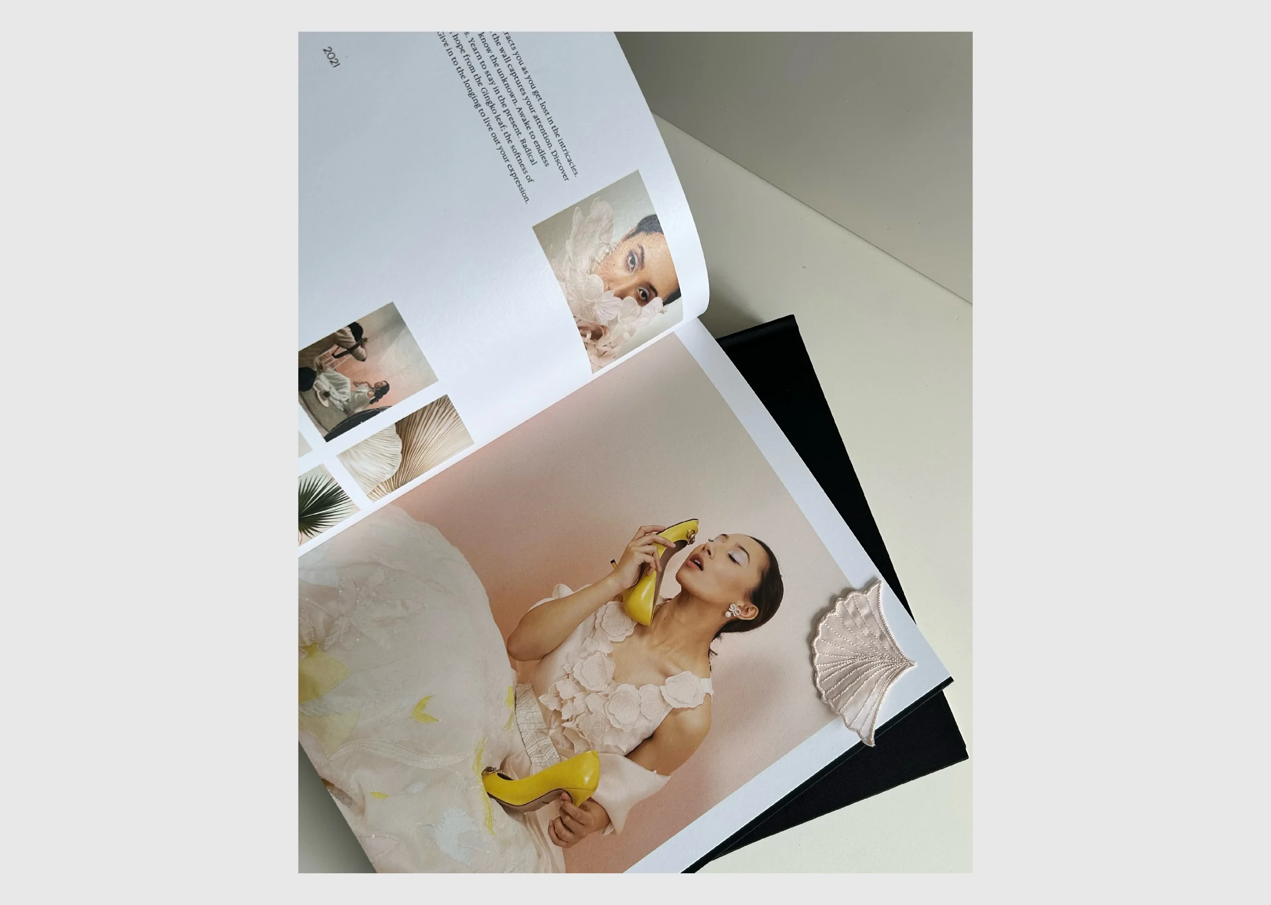 To celebrate the completion of a decade, a coffee table book was created, ‘Vantage,’ honouring not just the brand but also the faces who have been part of it over the years. It was gratitude for the muse, the collaborators, the well-wishers and for her audience, who believe in design that leaves an imprint. Exploring stories, conversations, and years of design, Vantage was a lesson in moving away from the timeline and creating a non-linear story through images and experiences of people that resonated with Richa’s history. An important aspect explored in our design was tactility. With swatches of fabrics and appliqués inserted between pages to complement the content, the book is as much an interactive experience as it is visual.