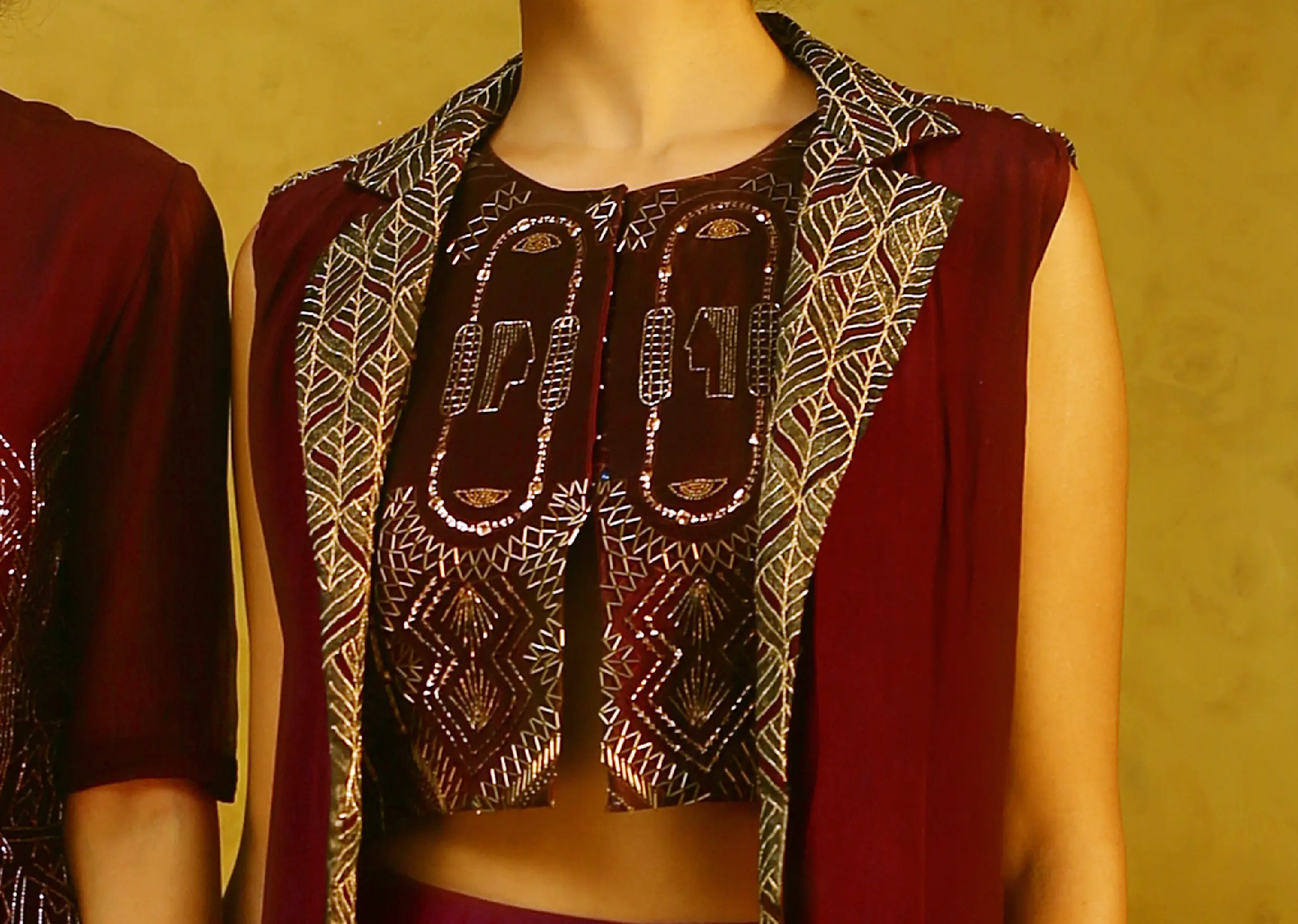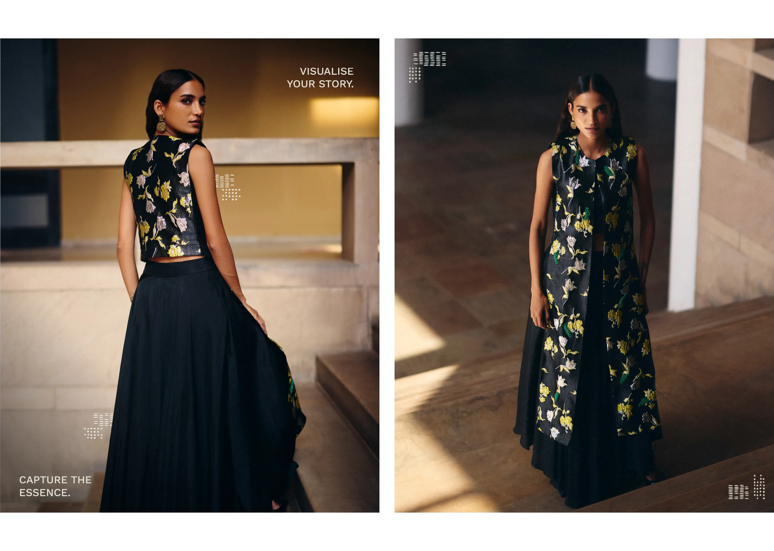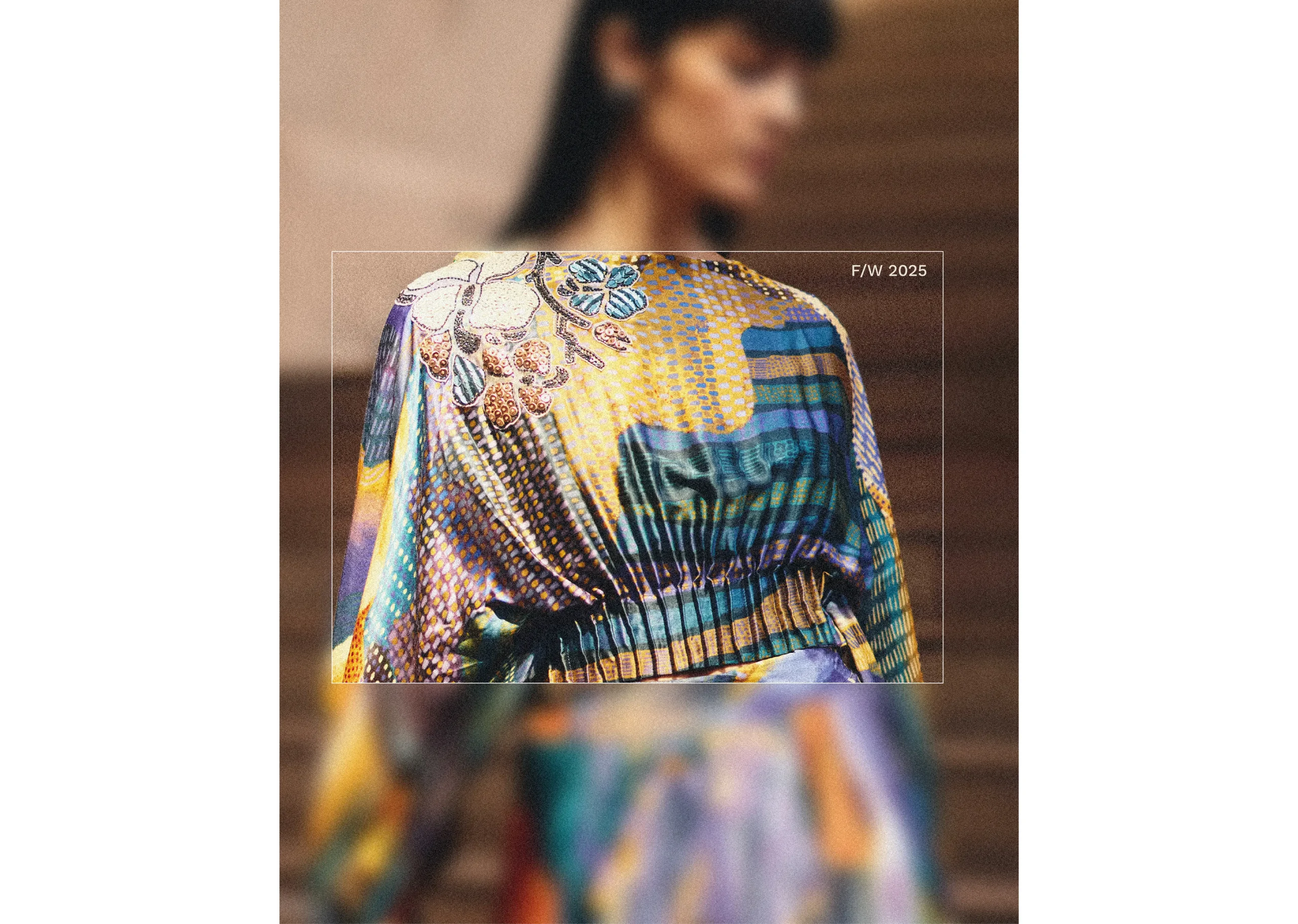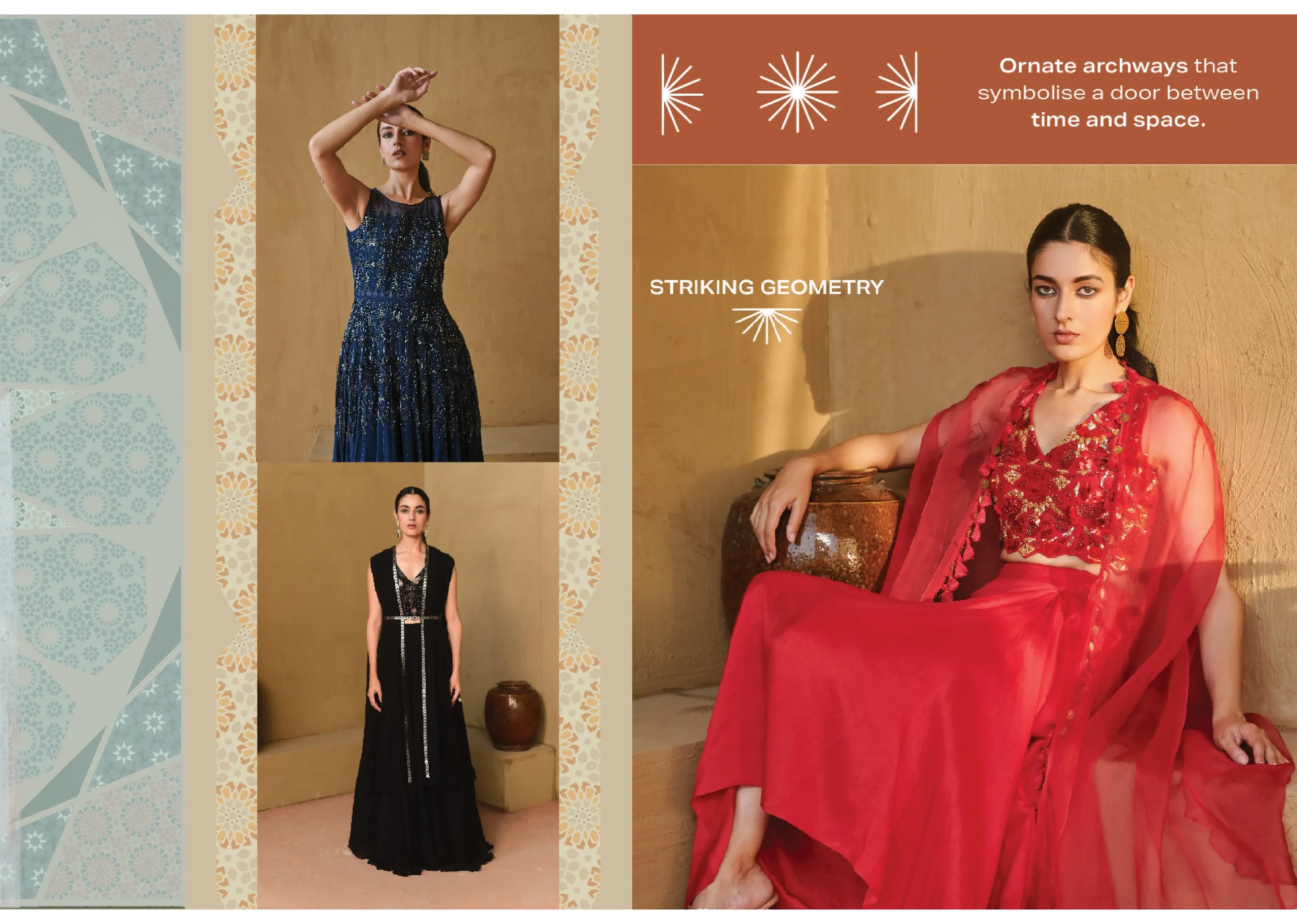 For All That Jazz, the Winter Festive 2019 collection, we were inspired by the Art Deco movement that debuted in Paris in the 1920s. Symmetrical, geometrical and pleasing to the eye, this architectural trend soon evolved into a cultural phenomenon. While creating the patterns, the rule of symmetry was kept in mind, and monolines were used to digitally create the design. Our patterns came to life across garments in print, foiling and beadwork.