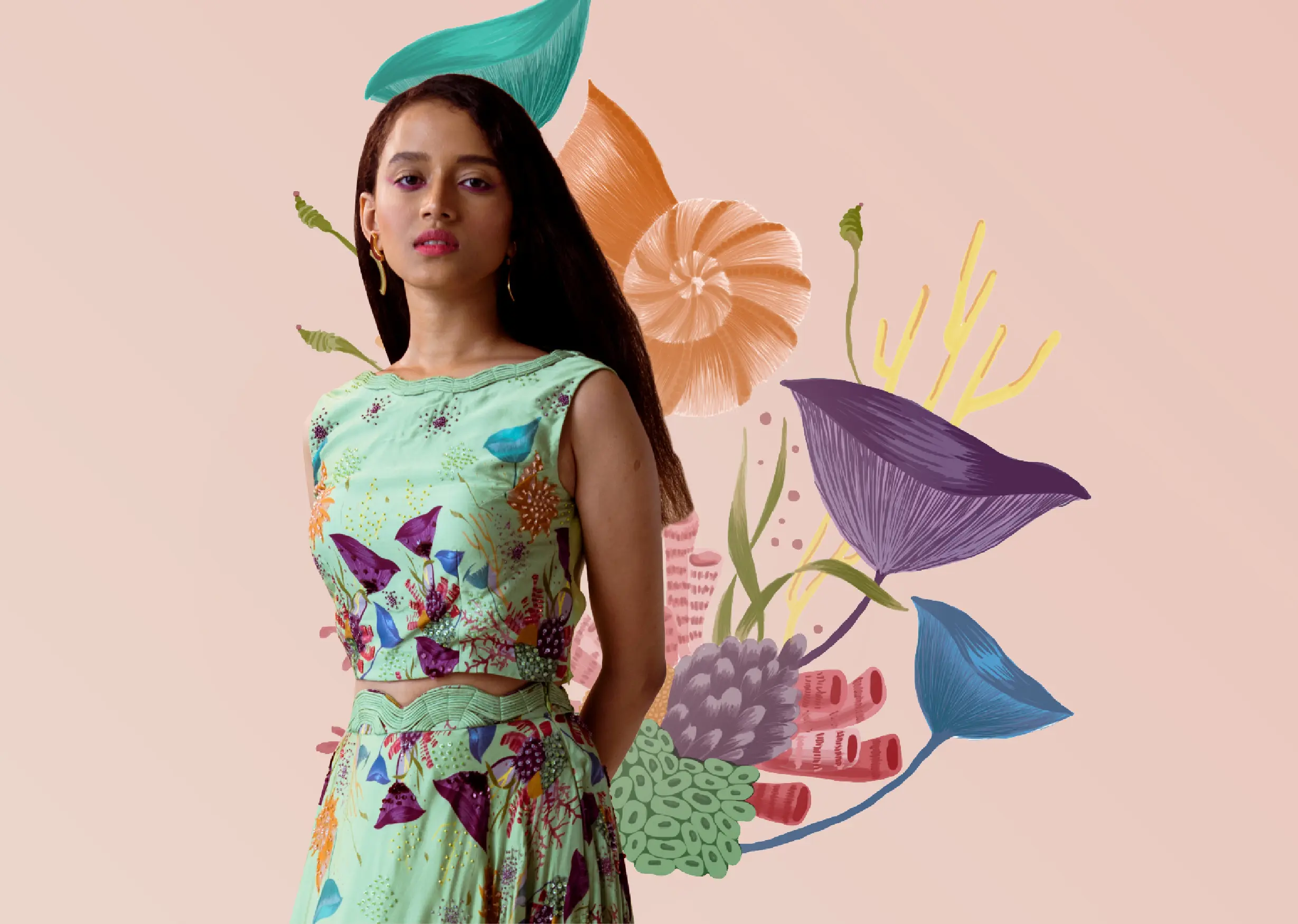 And so from the wilderness emerged something softer and more beautiful than one could ever imagine. Hand drawn illustrations of nature’s most beautiful and ‘wild’ plants, found in the unlikeliest of places came together in these garments. A mix of plants found underwater and on land were composed together to create patterns where they balance each other and yet carve their own path as they flow outward. These were later digitized and then printed and embroidered onto the garments.