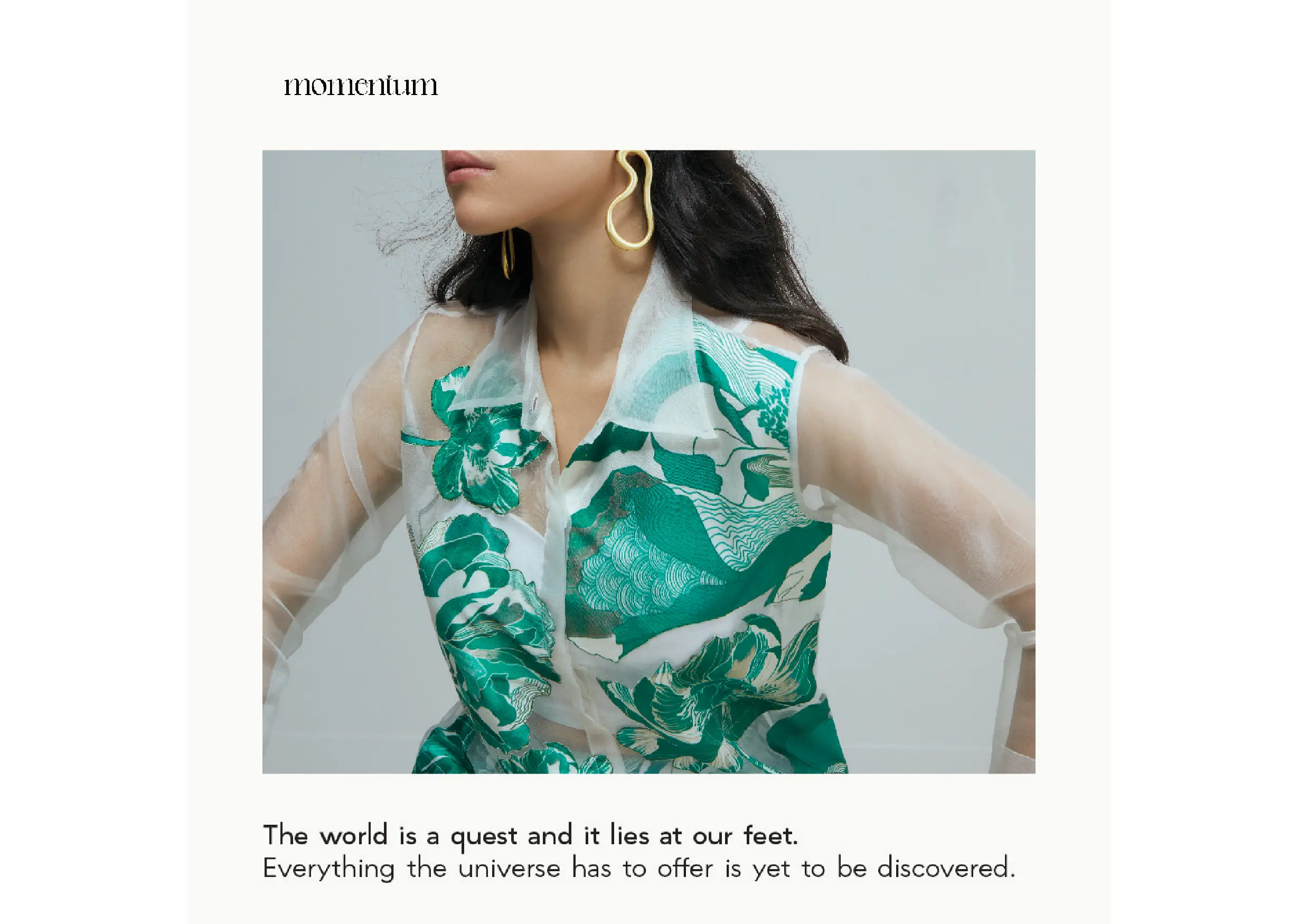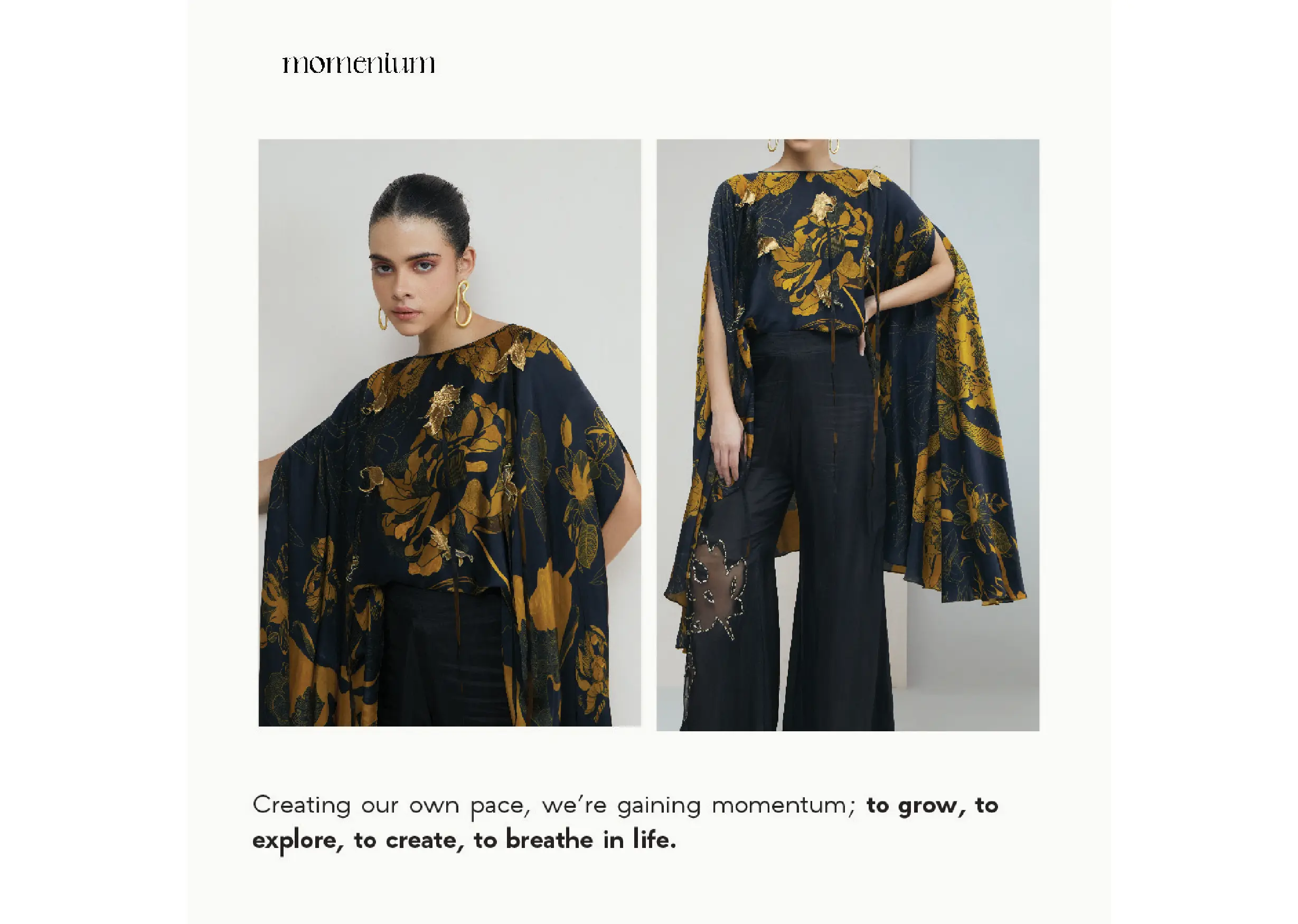 Highlighting vivid silhouettes and bold prints, while maintaining the poise that the outfits exude, Momentum was born from the idea of recreating the joyous chaos of living. The collection showcases the buzz of life, the rush that helps us move against the crowd, and gain Momentum. The vision for the shoot included fast-paced movement, blurred shots, juxtaposition of colours and monochrome with blocks.