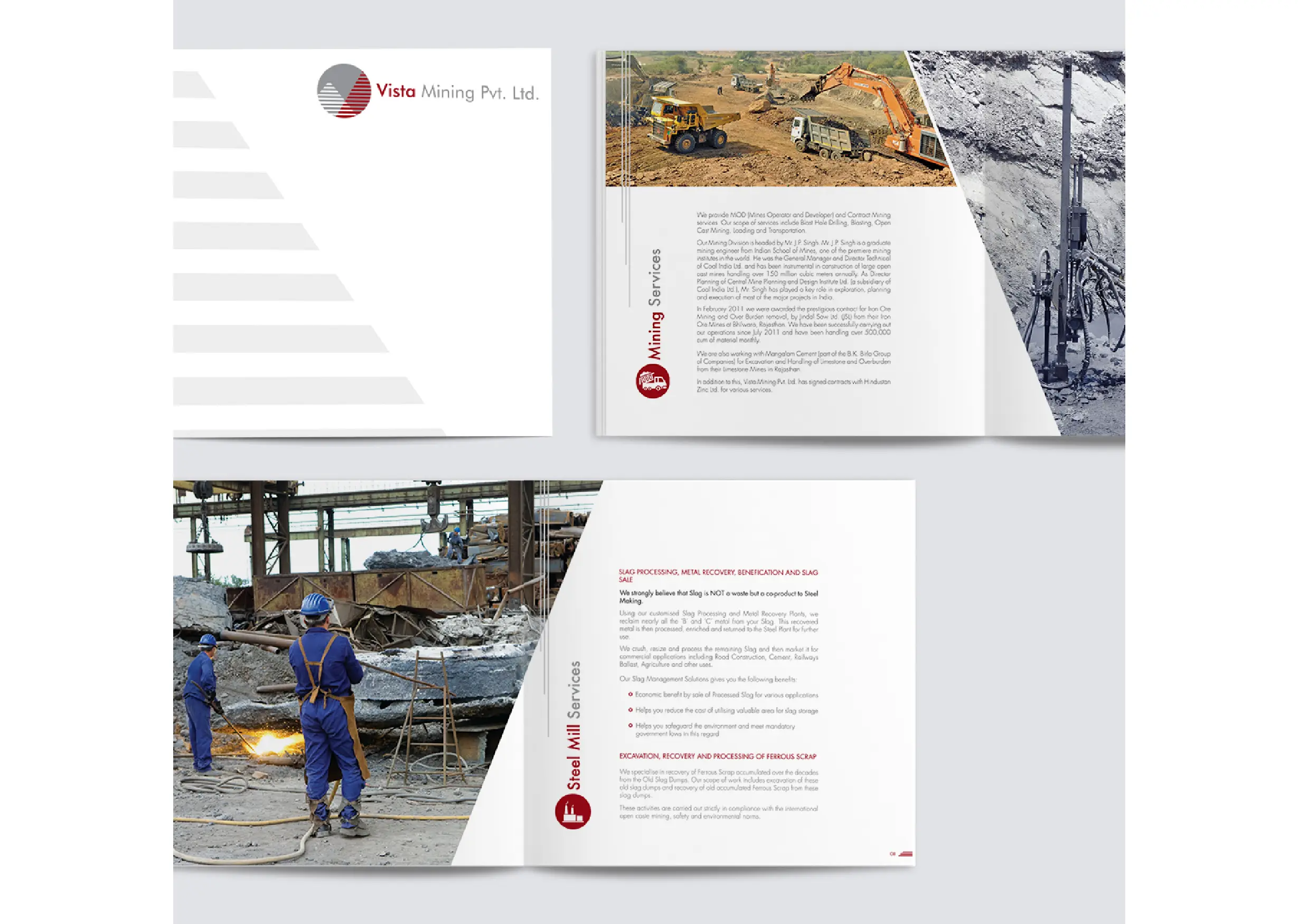 The brochure and stationery have a neat and crisp layout. The use of maroon and grey lend a modish look to this corporate.