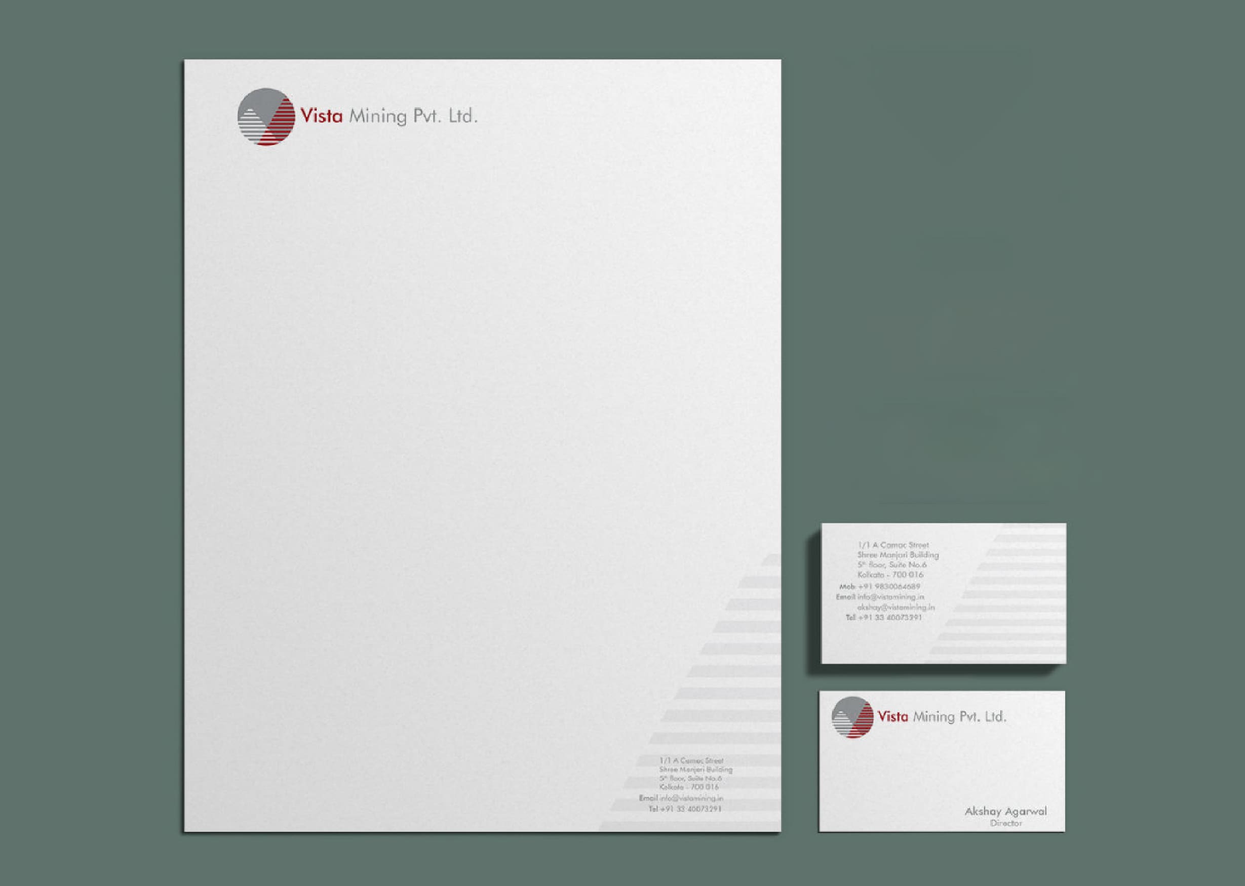 The brochure and stationery have a neat and crisp layout. The use of maroon and grey lend a modish look to this corporate.